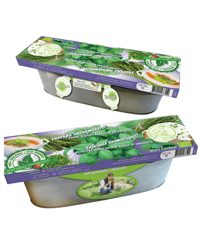 De handige zaaiset bevat een zakje grond, zakje met hydro-korrels en een zakje met ruime hoeveelheid zaad.