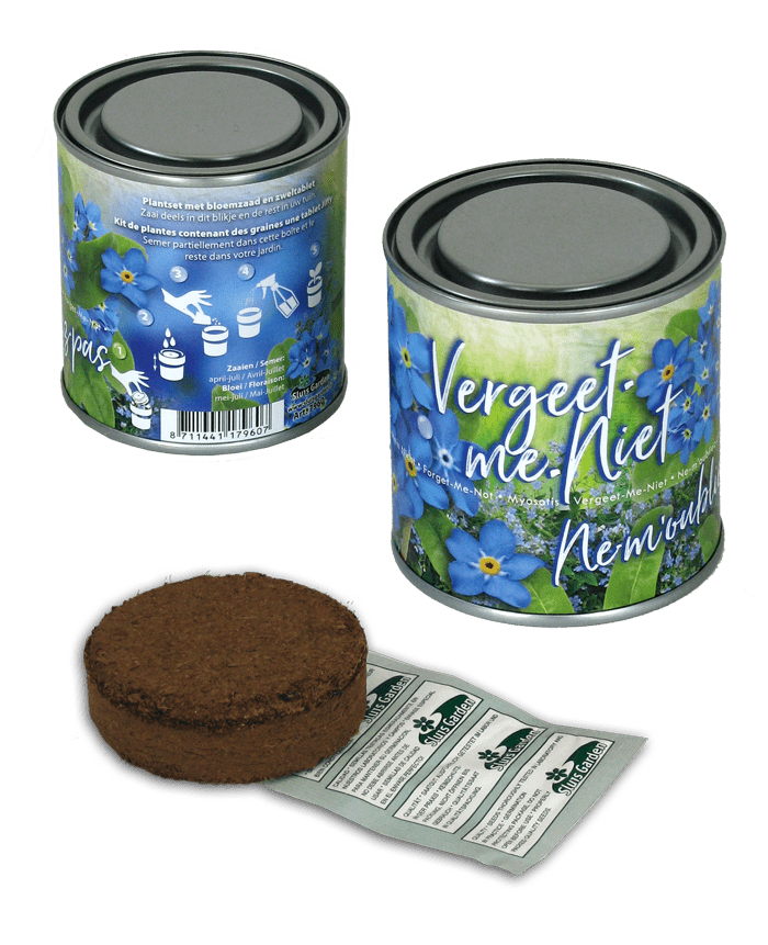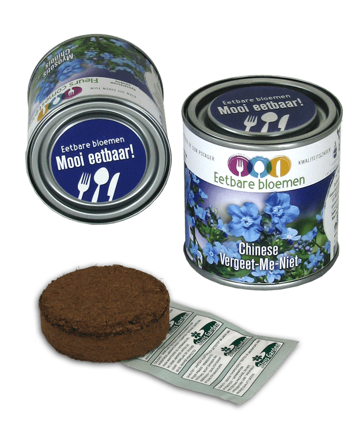 Personaliseer de blikken met uw logo of boodschap en creëer een unieke giveaway. Deze bedrukte blikken versterken uw zakelijke relaties en bieden een blijvende herinnering. Kies bijvoorbeeld voor basilicum, tomaten of vergeet-me-nietjes. Onze gepersonaliseerde blikken met zaadjes bieden meer dan een relatiegeschenk; ze geven een ervaring. De blikken zijn ook beschikbaar in showdozen per 24 stuks, perfect om neer te zetten op een beurs of event.