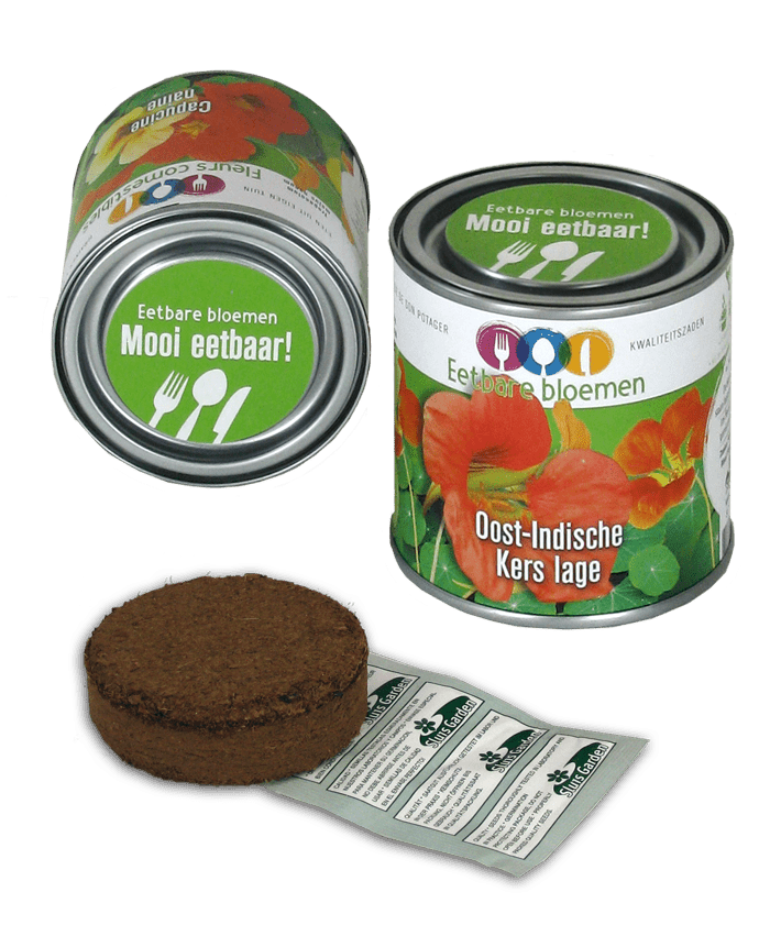 Op zoek naar een origineel en duurzaam relatiegeschenk? Onze losse blikken met zaadjes zijn precies de giveaways die u nodig heeft. Elk setje bevat een blik met bedrukte wikkel, gedroogde aarde en zaadjes. Perfect voor het eenvoudig kweken van kruiden of groenten. Heeft u een grotere hoeveelheid nodig? Bekijk dan onze showdozen van 24 stuks.